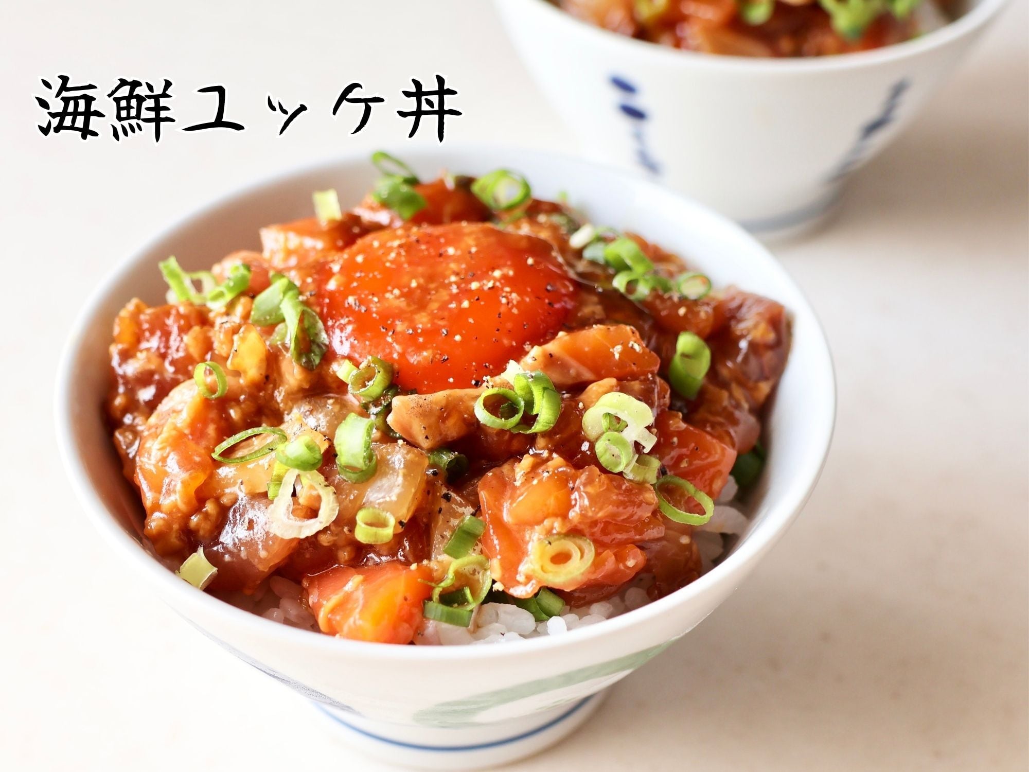 今回、海鮮漬け丼・ニラソースのレシピをお付けします。